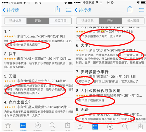 有人说产品很牛逼吧?我从appstore的用户评论翻了翻,消极评论占据到了60%左右,而且从这一年来的产品版本更新记录来看,除去4月份的新增QQ分享和配音功能外,基本上都是在修bug,改bug。