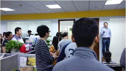 (图为小岳在为搜狐新闻客户端4.0攻坚战作战前动员打气讲话)