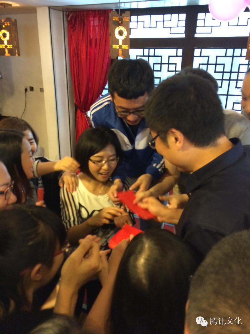 终于看到了小马哥真人,一改西装革履的男神形象,一身红彤彤的很是喜庆,“屌丝”们都激动了!小编从Pony、Martin、Daniel和James手中拿到了红包,实在是太开心啦!