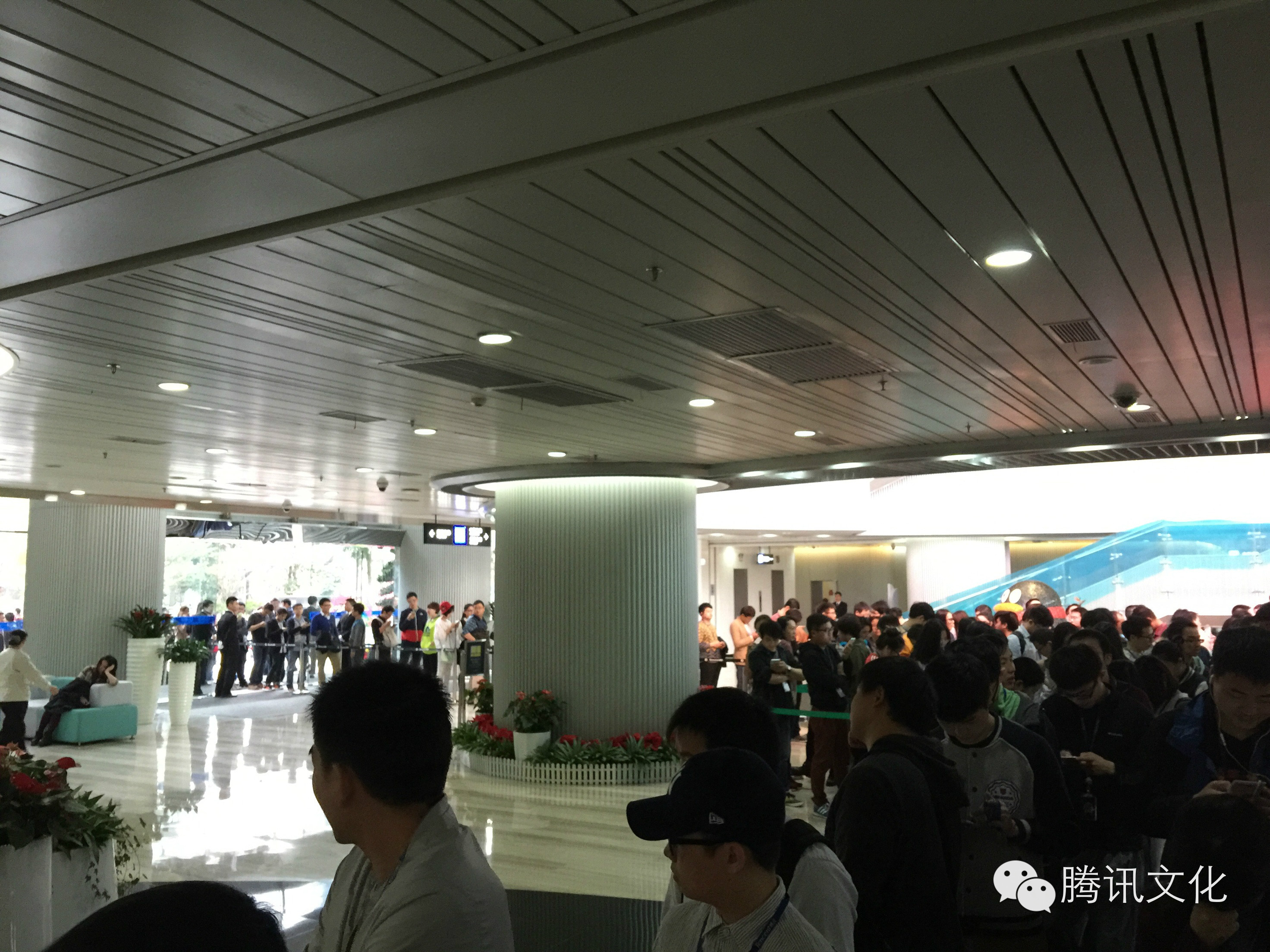 第一批排队的大部队正在跃跃欲试等候电梯的开放。